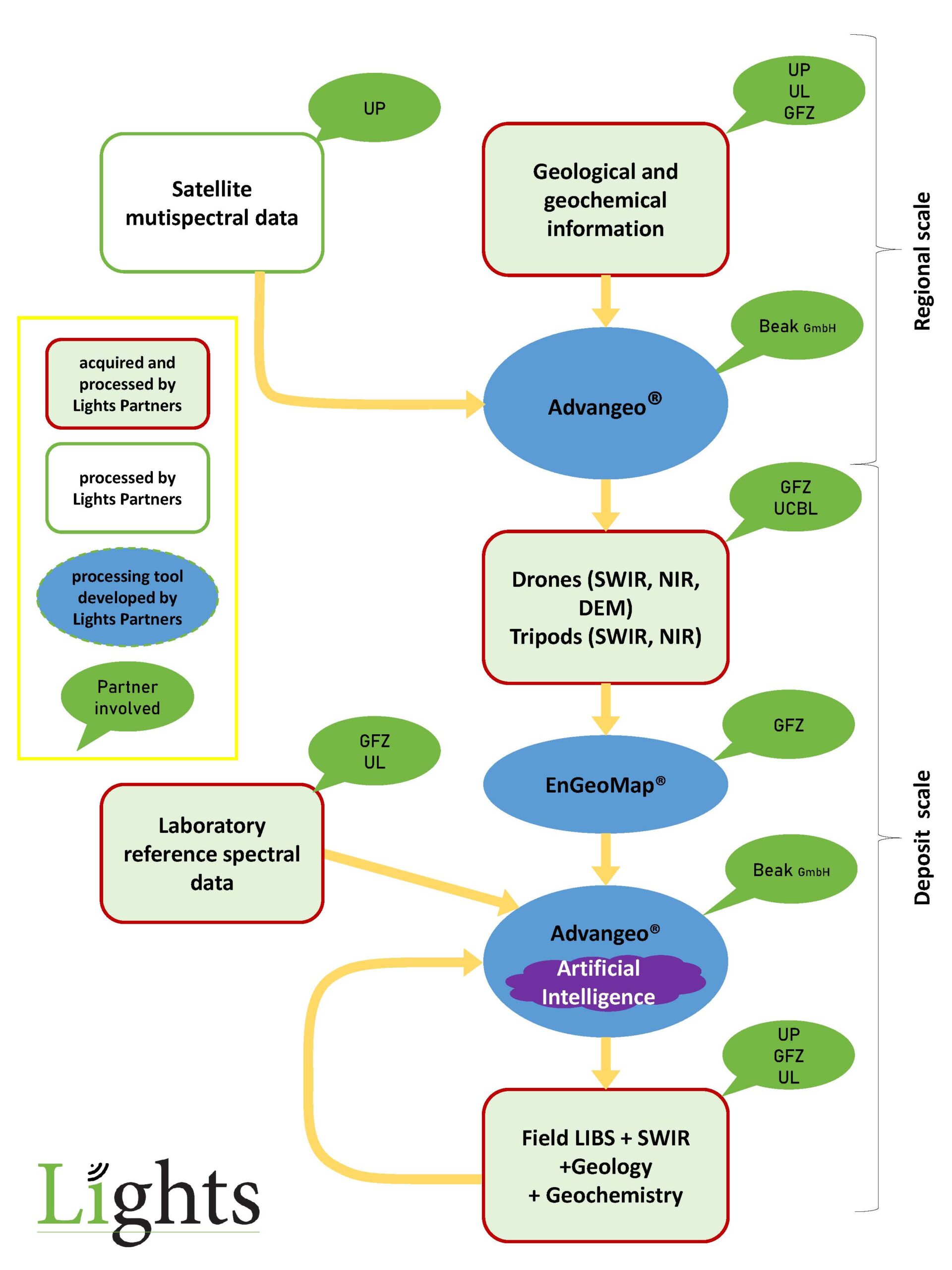 For this end, we are introducing the Lightweight Integrated Ground and Airborne Hyperspectral Topological Solution (LIGHTS) that comprises cutting edge drone, camera and software technology. It will be firstly applied to European Li-deposits.For the first time in the world, the proposed technology enables the mapping of lithium such that for a given area, the likelihood of the element is clearly displayed for each geographic point.